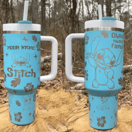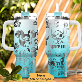 Stitch Cartoon BLue Custom Quencher 40oz Stainless Steel Tumbler With Handle HG