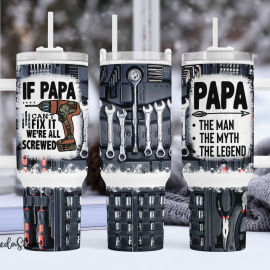 Papa The Man The Myth The Legend Dad Mechanic 30oz or 40oz Quencher Tumbler Birthday Gift LN If Papa Can Fix it We All Screwed Fathers Day