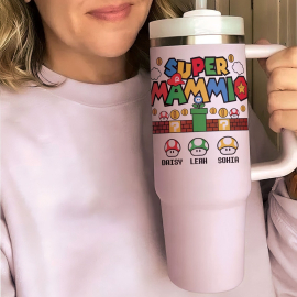 Custom Super Mommio Tumbler HG 40oz, Personalization Super Daddio Kiddo Matching Cup, Mother’s Day Mom Tumbler HG with Kids Name