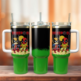 Deadpool Superhero Marvel Custom Quencher 30oz or 40oz Stainless Steel Tumbler With Handle, Best gifts for Friend Family NVA
