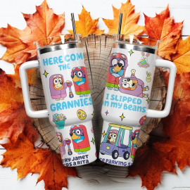 Here Come The Grannies Bluey Cartoon 30oz or 40oz Quencher Tumbler LN Bluey And Friends