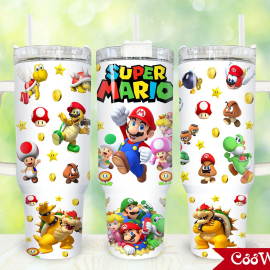 Cartoon Super Mario Characters 40oz Tumbler, Game Characters 30oz or 40oz Tumbler with Handle, Birthday Anniversary Tumbler Gift HFN