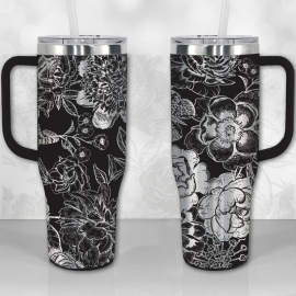 30oz or 40oz Tumbler with Handle Wild Roses and Flowers Line Art Pattern Best Gifts NVA