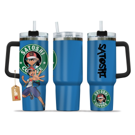 Ash Ketchum Satoshi Coffee Pokemon Anime Custom 30oz or 40oz Quencher Stainless Steel Tumbler With Handle, Best Gift Idea NVA