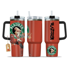 Blaziken Coffee Pokemon Anime Custom 30oz or 40oz Quencher Stainless Steel Tumbler With Handle, Best Gift Idea NVA