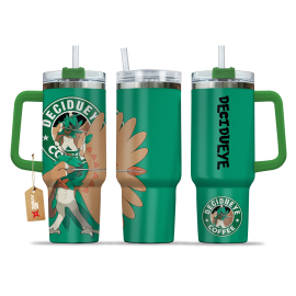Decidueye Coffee Pokemon Anime Custom 30oz or 40oz Quencher Stainless Steel Tumbler With Handle, Best Gift Idea NVA