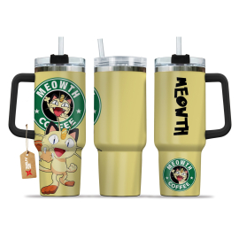 Meowth Coffee Pokemon Anime Custom Quencher 30oz or 40oz Stainless Steel Tumbler With Handle HG