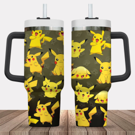Pikachu Coffee Pokemon Anime Custom 30oz or 40oz Quencher Stainless Steel Tumbler With Handle, Best Gift Idea NVA