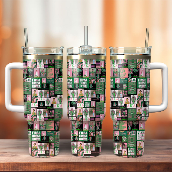 AKA First and Finest Custom Quencher 30oz or 40oz Stainless Steel Tumbler With Handle, Best gifts for Friend Family NVA