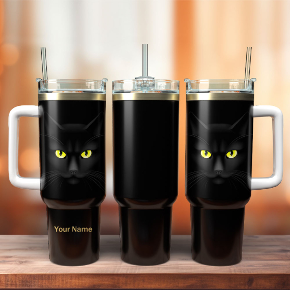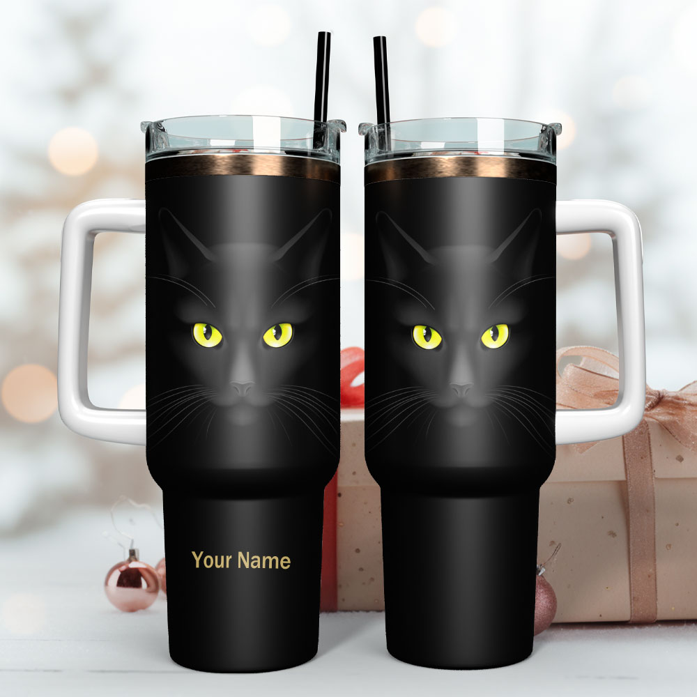 Black Cat Artwork Custom Stanley Quencher 30oz or 40oz Stainless Steel Tumbler With Handle HG