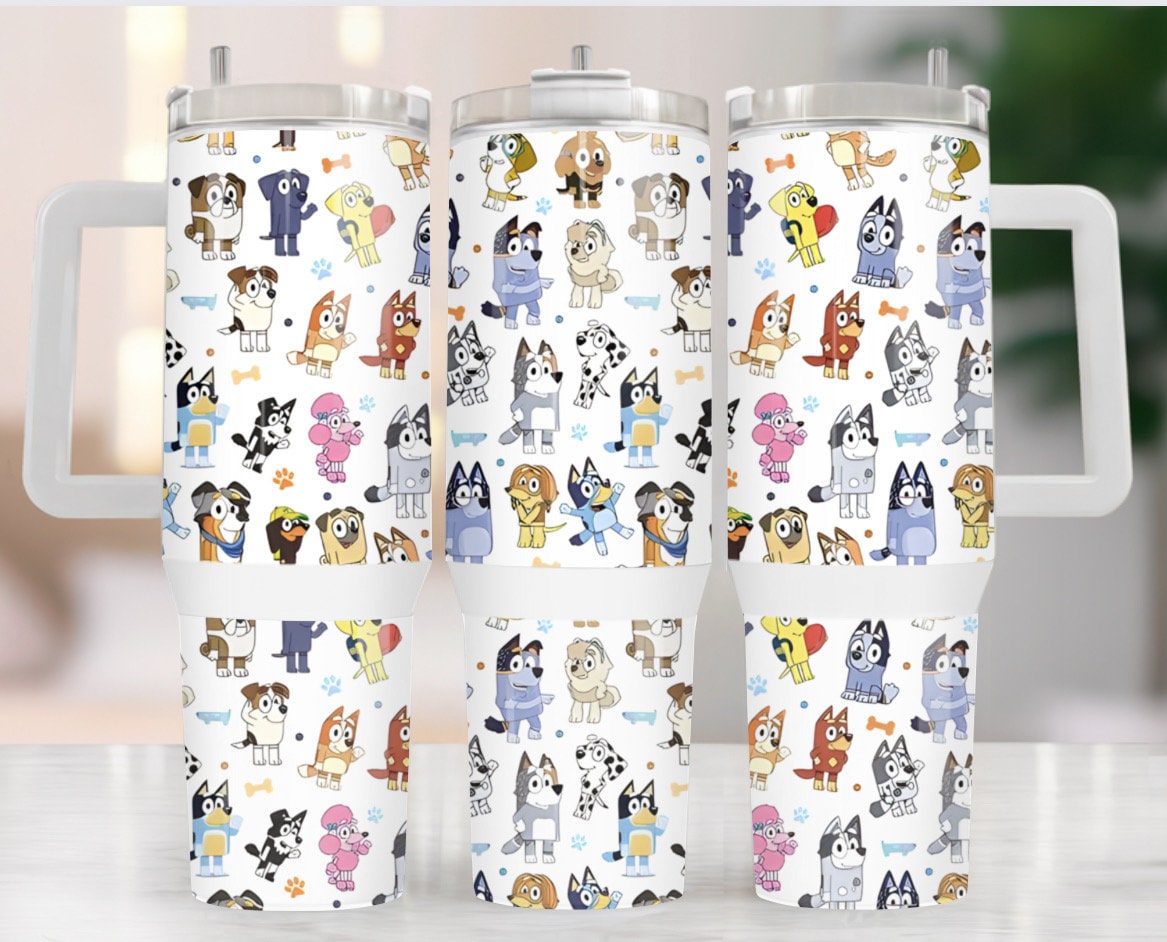 Bluey Cartoon Custom Quencher 30oz or 40oz Stainless Steel Tumbler With Handle HG