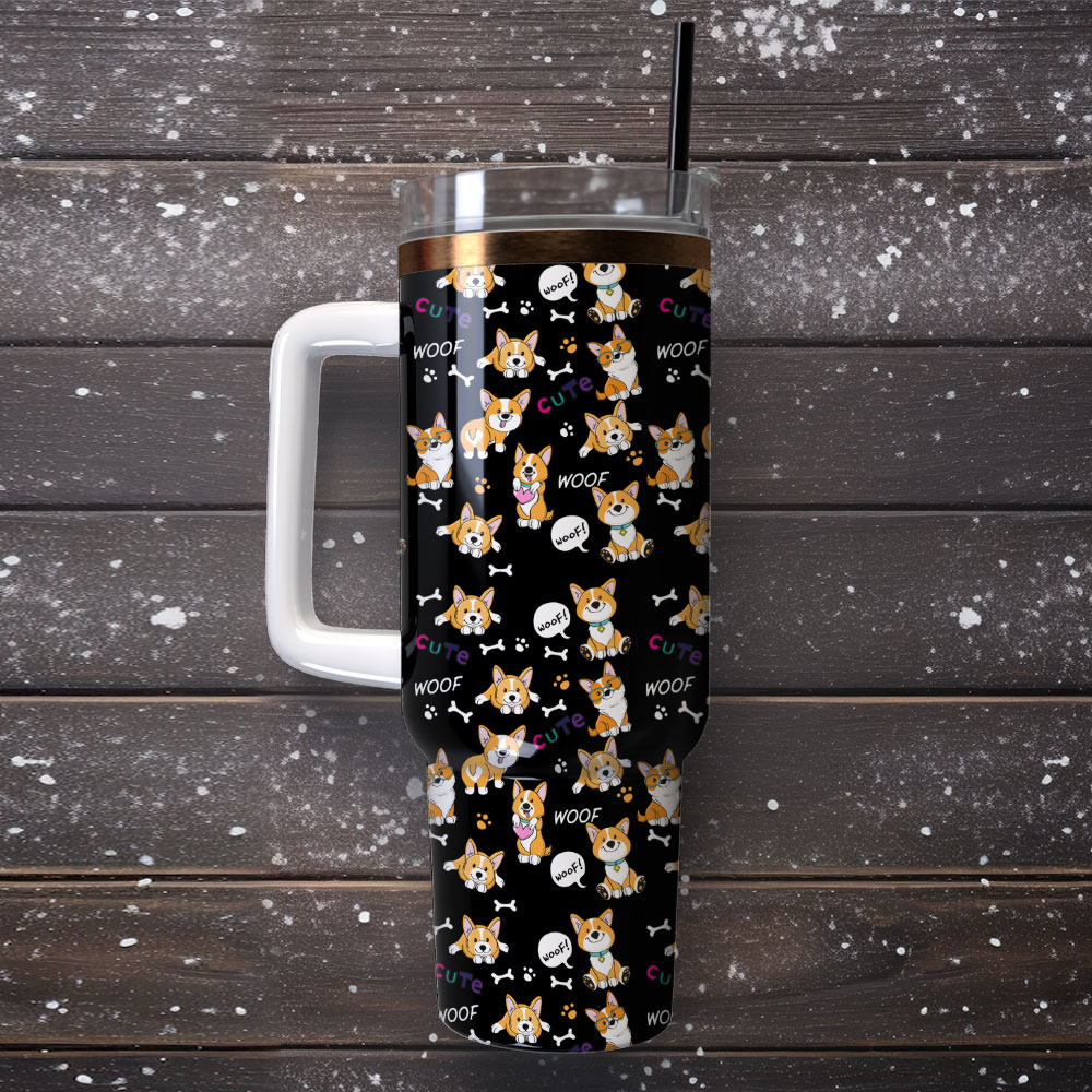 Cute Corgi Anime Custom Quencher 30oz or 40oz Stainless Steel Tumbler With Handle, Best gifts for Friend Family NVA