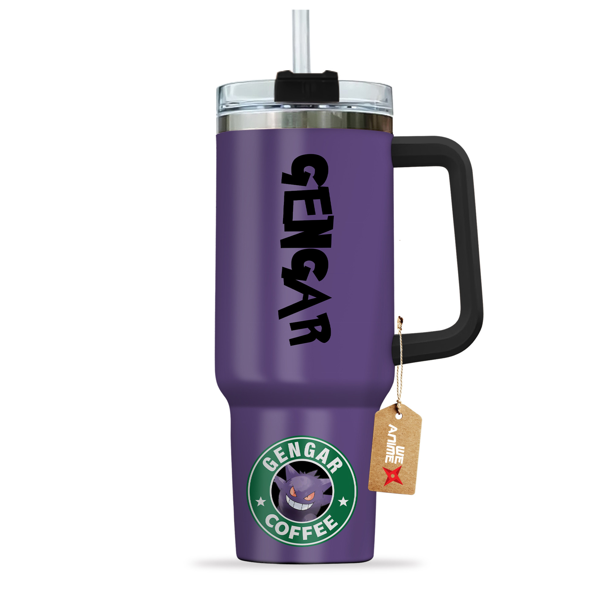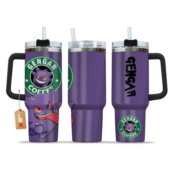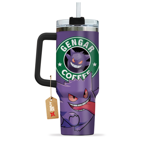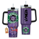 Gengar Coffee Pokemon Anime Custom 30oz or 40oz Quencher Stainless Steel Tumbler With Handle, Best Gift Idea NVA