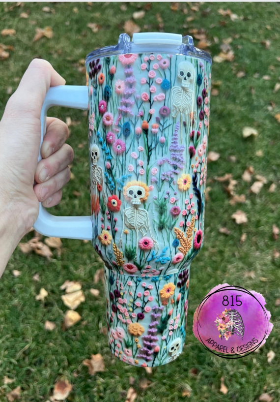 Halloween gift Skull And Flower Flat Printed 30oz or 40oz Tumbler HG
