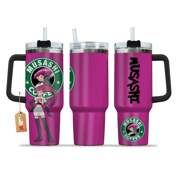 Jessie Musashi Coffee Pokemon Anime Custom 30oz or 40oz Quencher Stainless Steel Tumbler With Handle, Best Gift Idea NVA