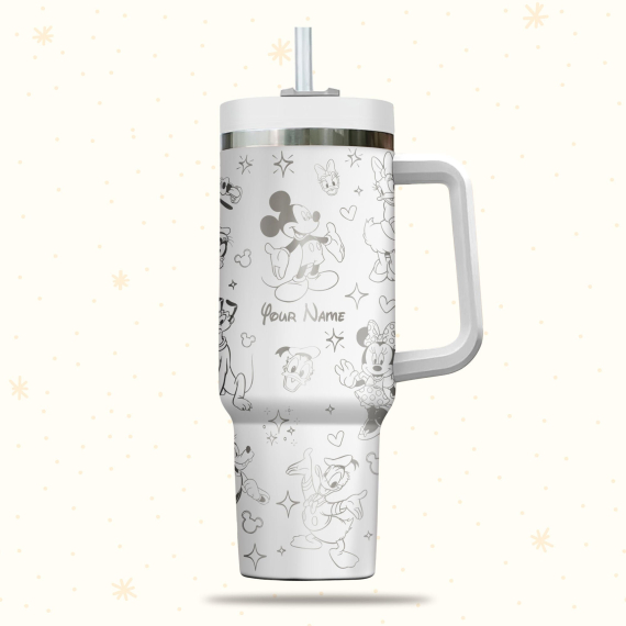 Mickey And Friends Disney Cartoon 30oz or 40oz Quencher Stainless Steel Tumbler With Handle, Best Gift Idea NVA