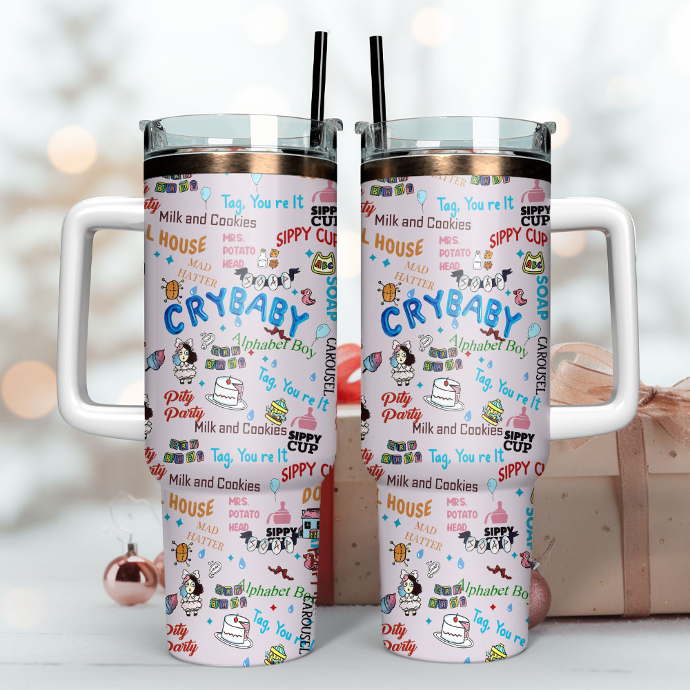 Pinky Crybaby Anime Custom Quencher 30oz or 40oz Stainless Steel Tumbler With Handle, Best gifts for Friend Family NVA