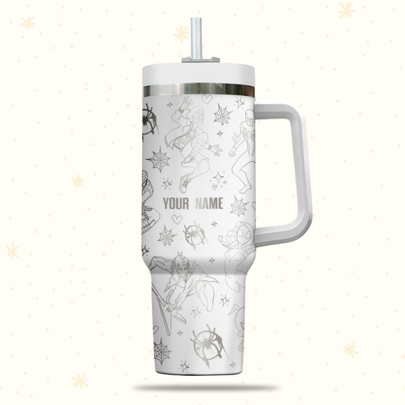 Spiderman Spiderverse Marvel Cartoon 30oz or 40oz Quencher Stainless Steel Tumbler With Handle, Best Gift Idea NVA